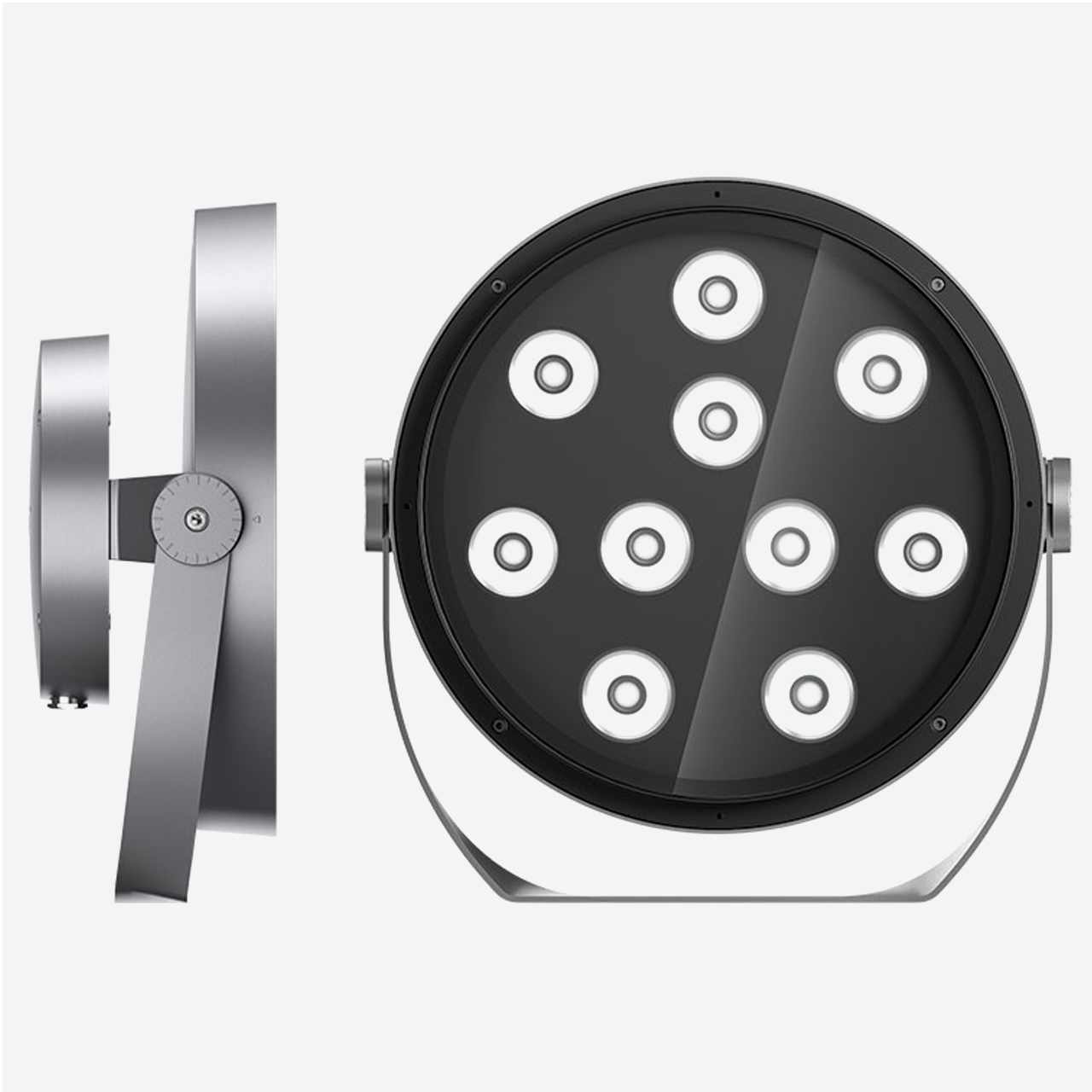 - Comprising an optical compartment and bracket in die-cast aluminium and transparent tempered sodium-calcium safety glass.