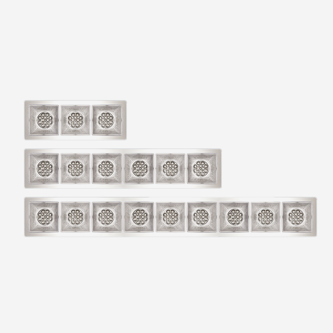 - The raster includes multiple lens diaphragms for LED lamps. The result generates a high performance light emission combined with a high energy yield.