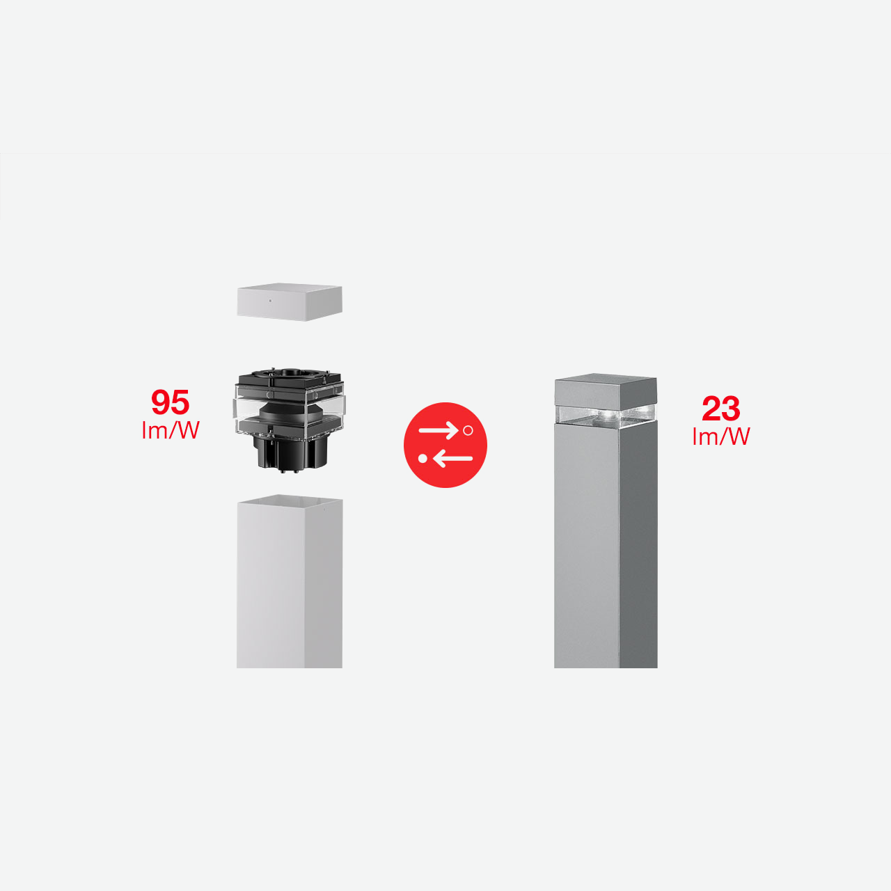 - Optical assembly retrofit kit designed to use LED lamps for iWay square bollards and relamping existing metal halide or fluorescent lamp systems.
