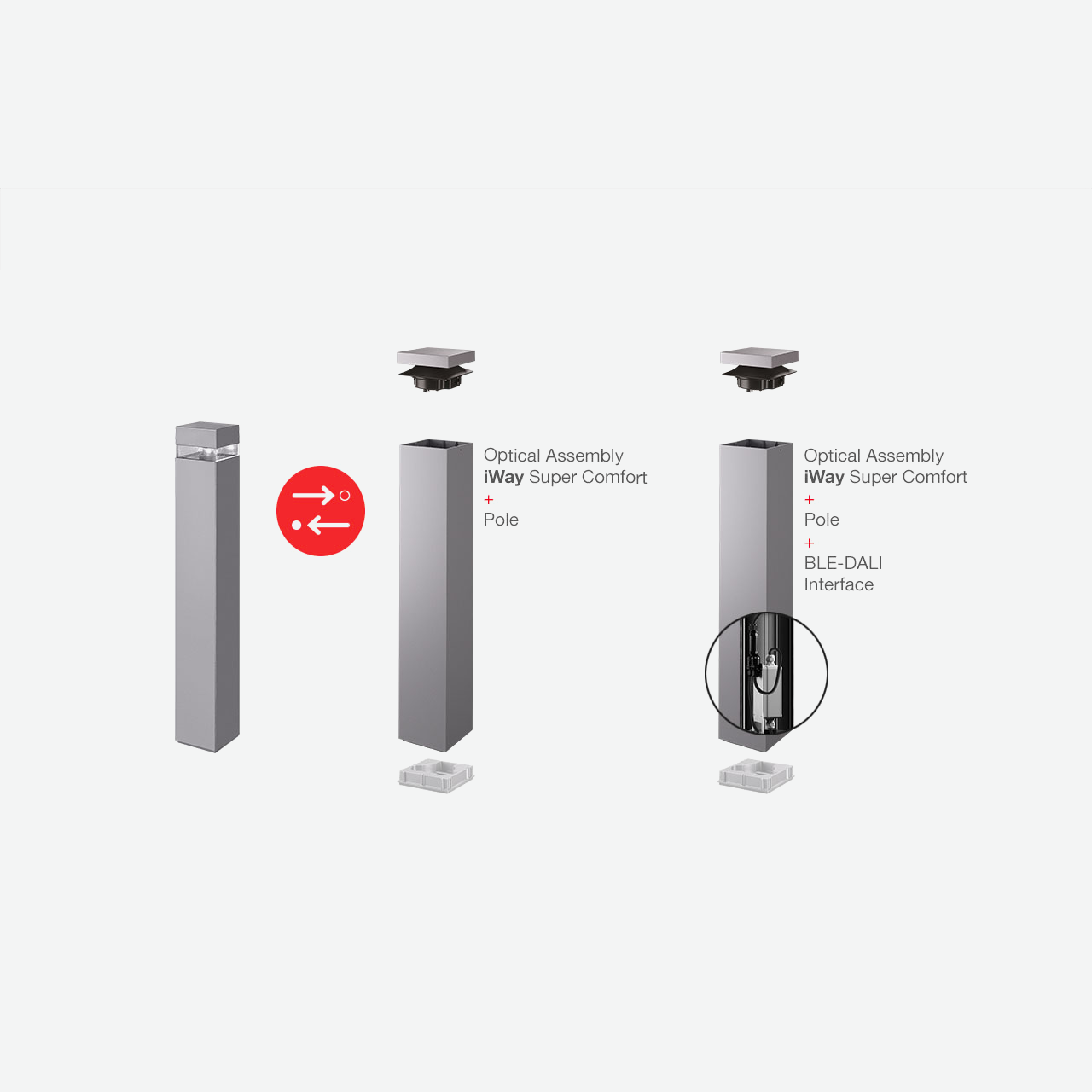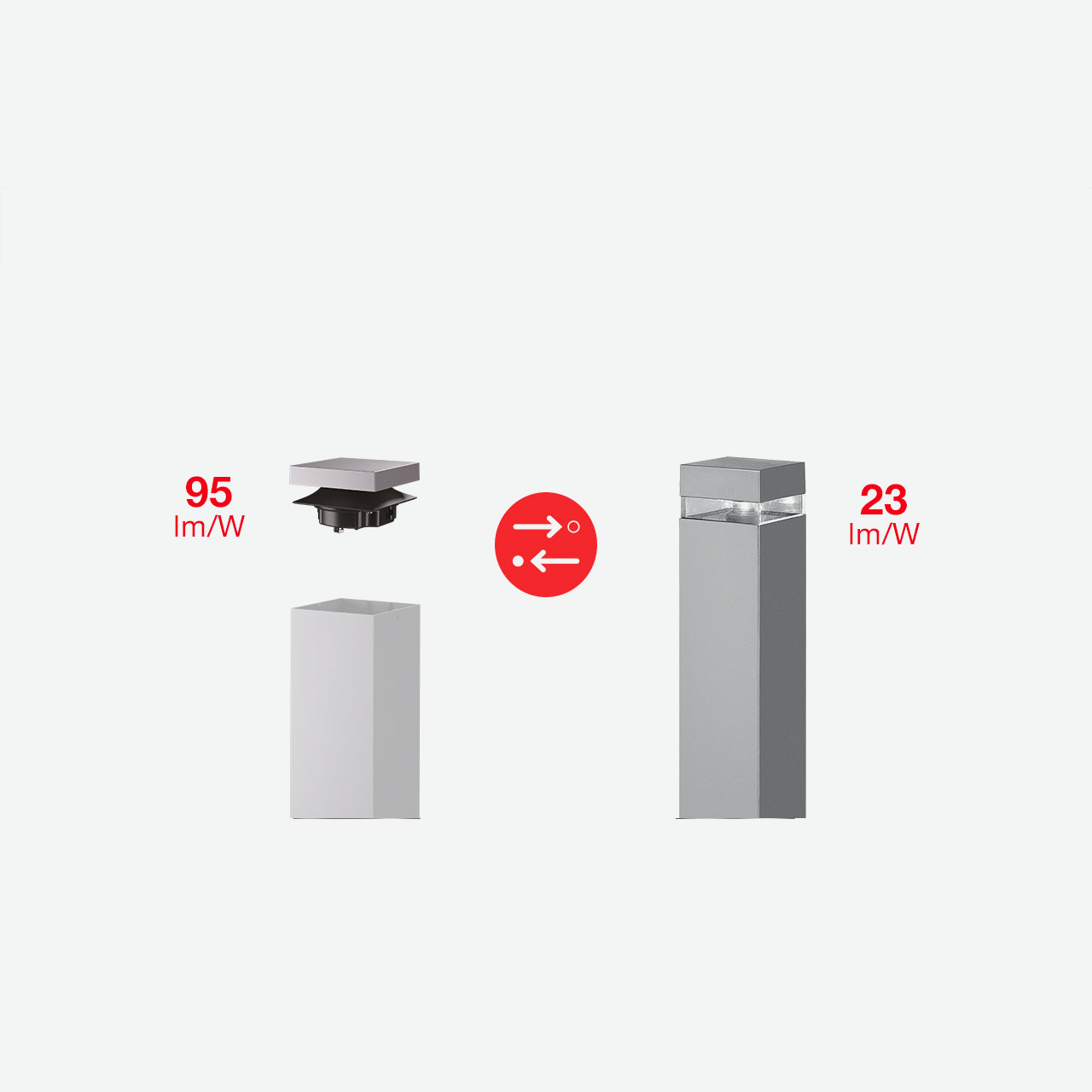 - Pole retrofit kit made of extruded aluminium with a sheet aluminium lamp cover and a die-cast aluminium alloy base for fixing to the ground. The poles, lamp covers and base are available in White, Black, Rust Brown and Grey.