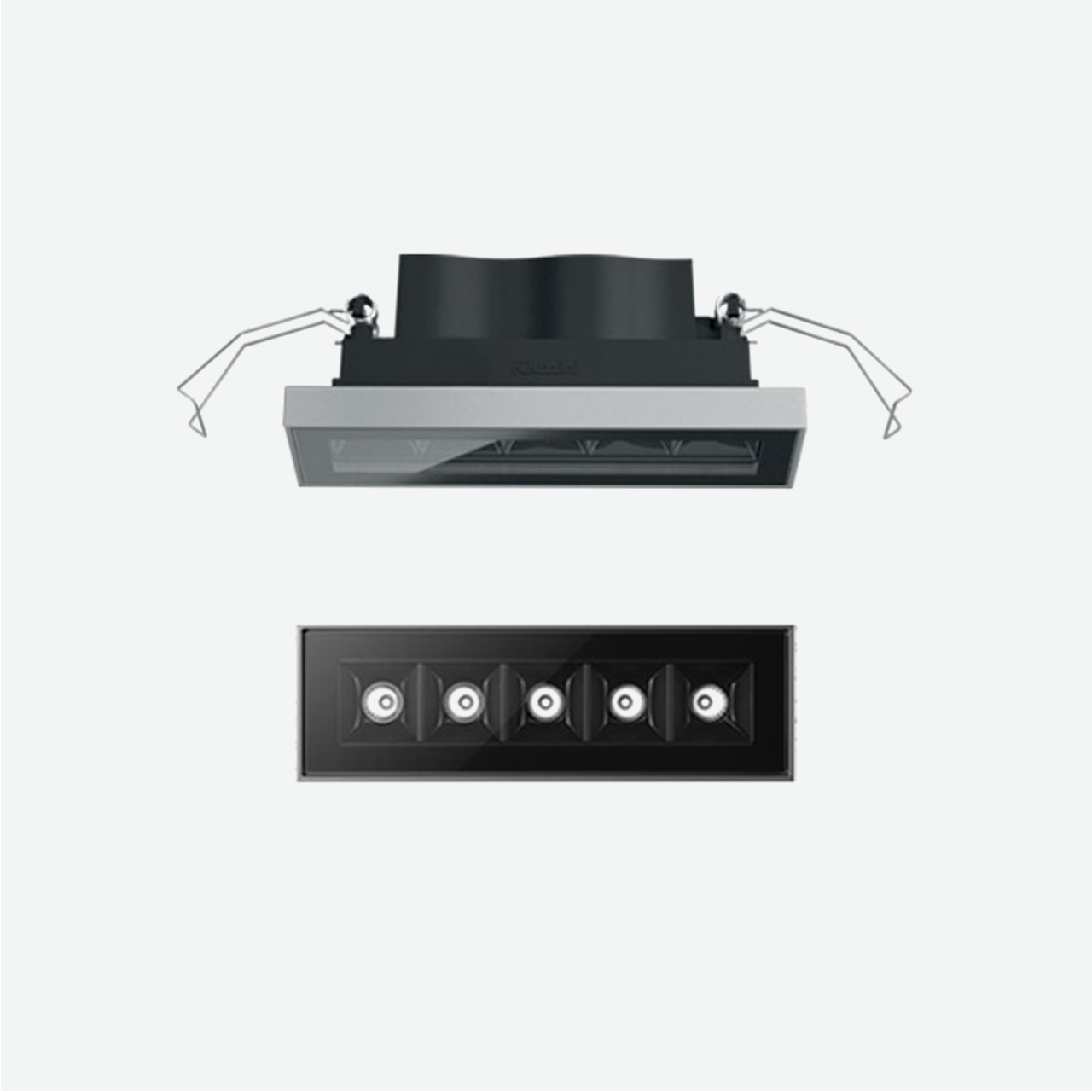 - High-definition optics made of metallised thermoplastic material, integrated in the innovative black anti-glare screen that defines emission with luminance control UGR<19.