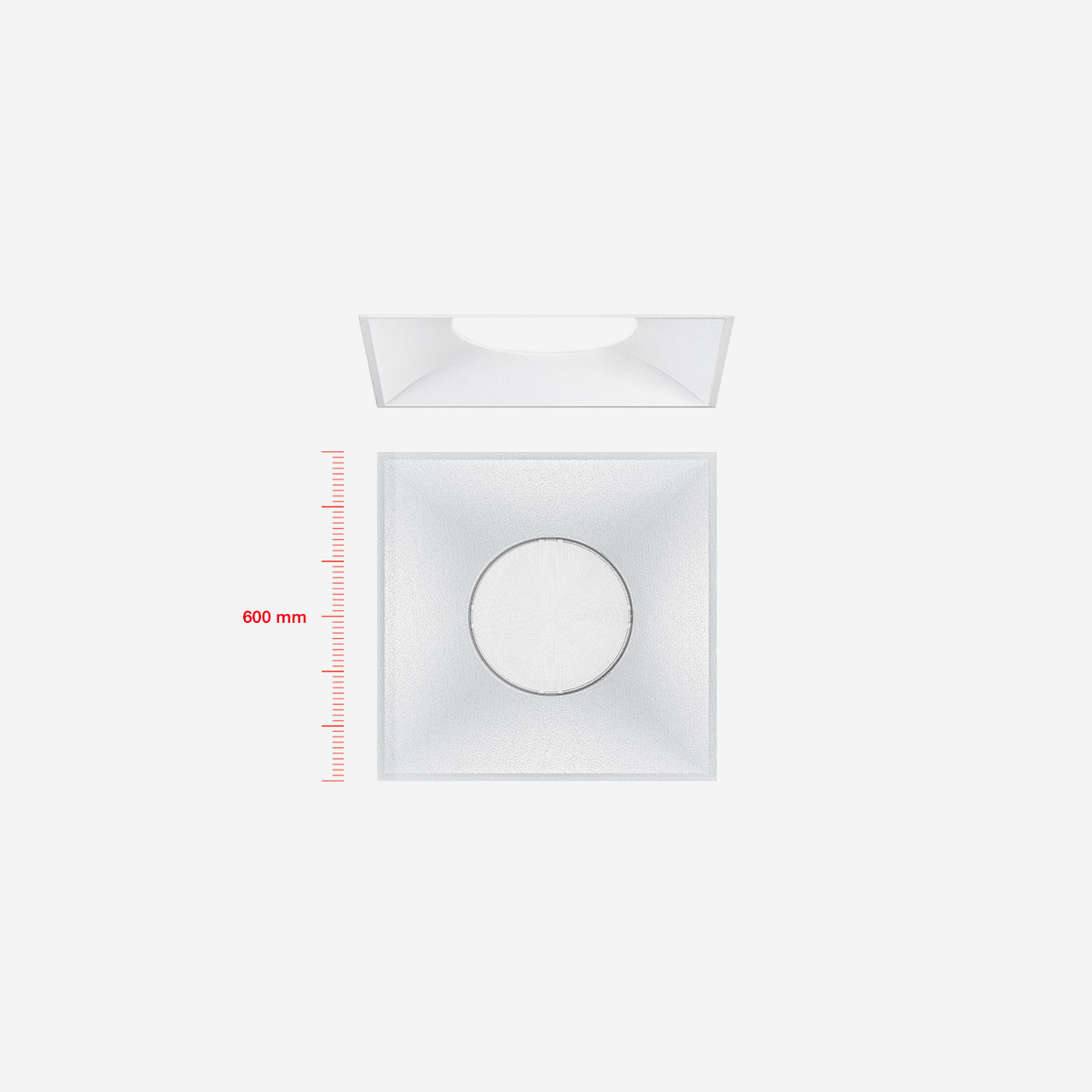 - 596x596 mm luminaire for pendant installation or surface-mounted on a modular grille - LED lamp with high colour rendering index.