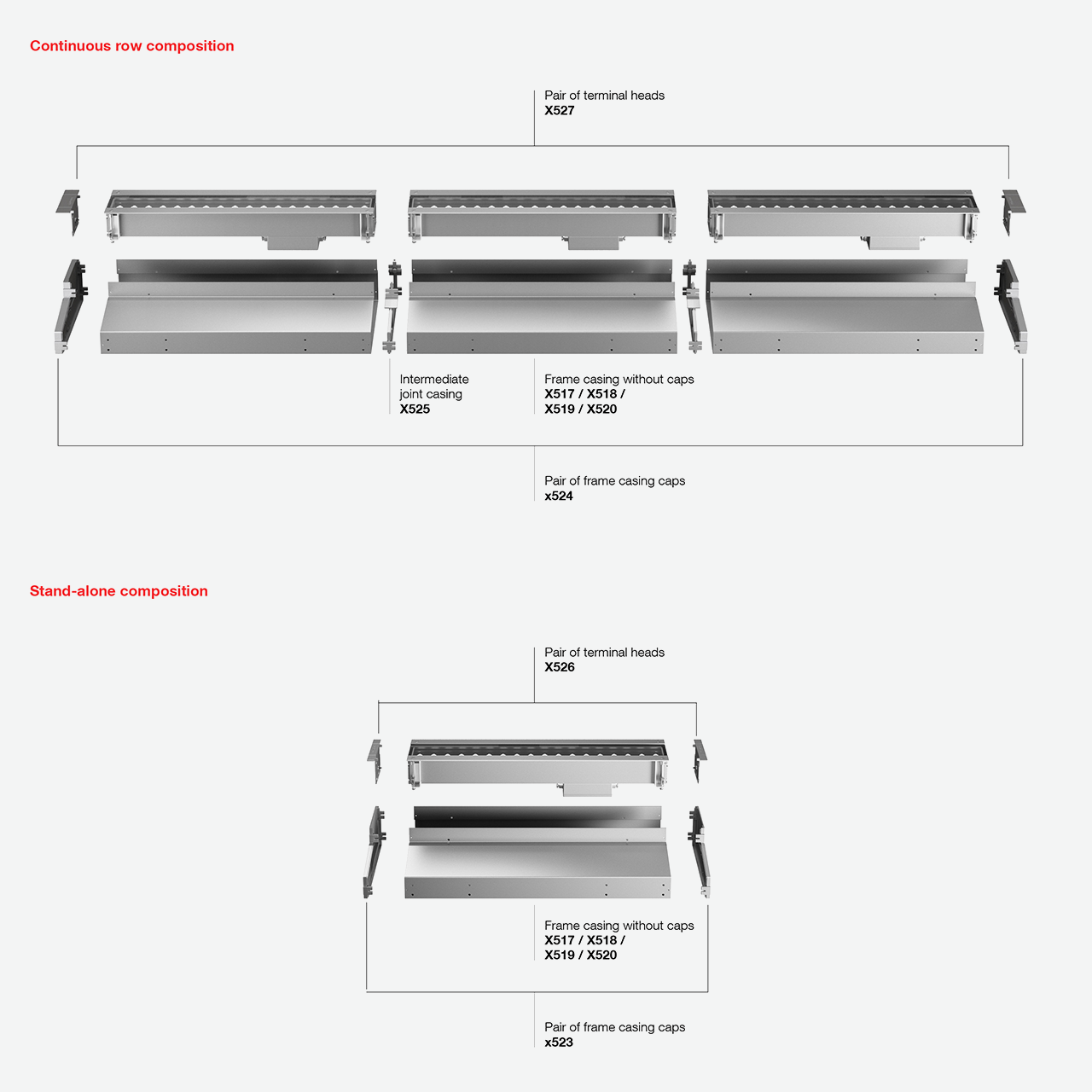 - Comprising body, casing and end caps to be ordered separately.