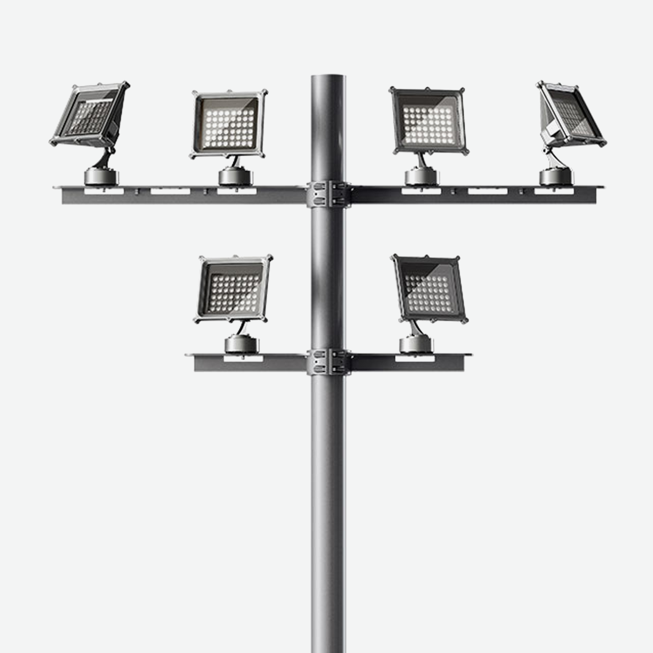 • Pole-mounted installation via arms (single or double) or flange (single or double).