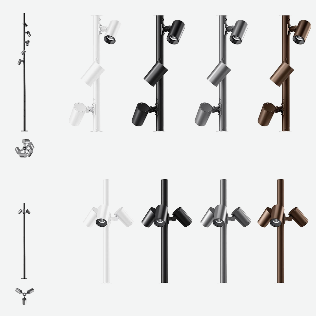 - The cylindrical-conical poles are available in heights of 5, 7, 9 and 12m both in a version for burial and a version with a plate in White, Black, Rust Brown and Grey.
