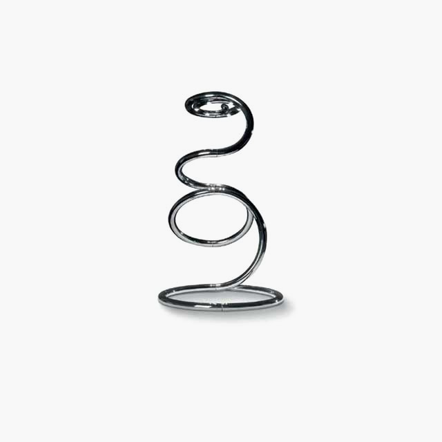 - Desk luminaire made of aluminium and steel with glossy chrome-plated finish, formed of concentric spires and adjustable head made of die-cast aluminium.