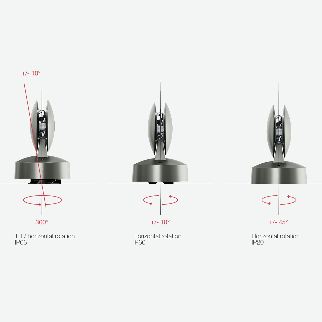 - X960: base for installation in both outdoor and indoor environments with adjustment options both lengthways (from -10° to +10°) and sideways (360°);