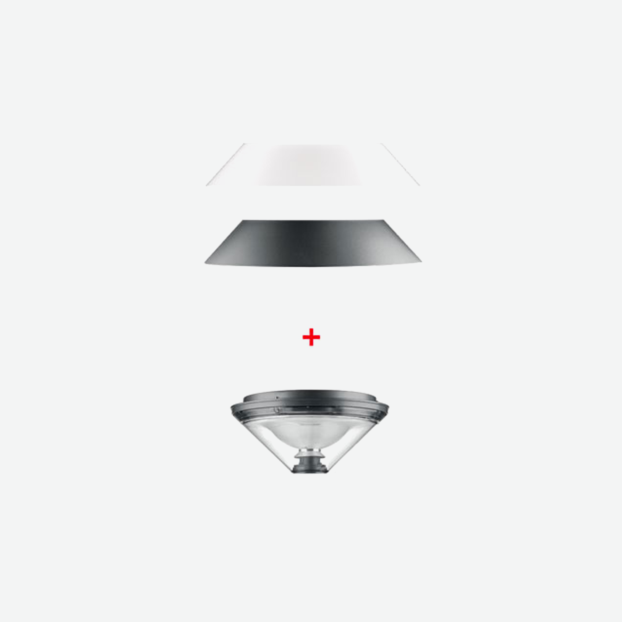 - Versions with street optics and the Optismart Lenses system, versions with symmetrical/elliptical optics comprising upper reflector in super-pure anodised aluminium, methacrylate lens and lower refl ector in metallic PMMA.